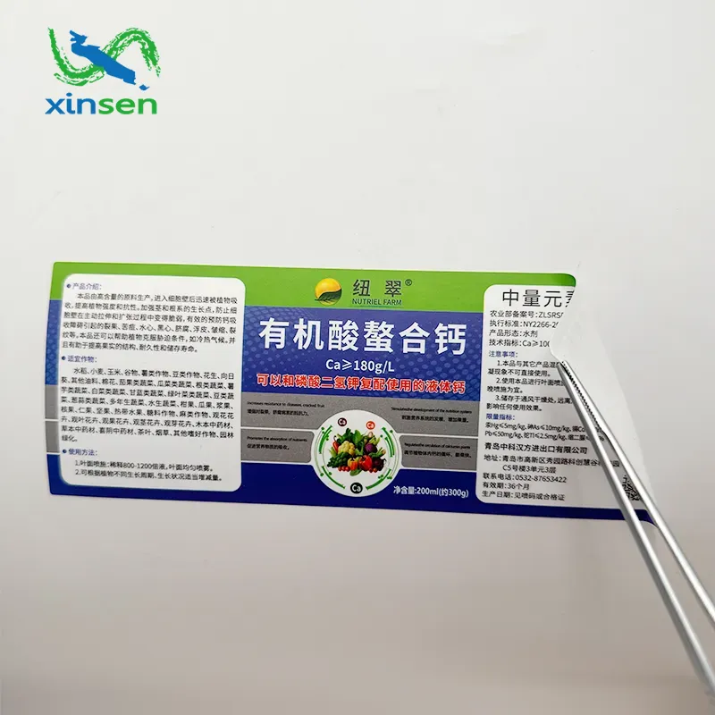 XINSEN, en professionell leverantör med fokus på skräddarsydda kosttillskottsetiketter, har åtagit sig att tillhandahålla säkra, kompatibla och mycket professionella etikettlösningar för den globala kosttillskottsindustrin. Genom att anta hållbara material av livsmedelskvalitet och precisionsutskriftsteknik, följer XINSEN strikt relevanta regulatoriska standarder över hela världen. Dess kosttillskottsetiketter stöder omfattande anpassning, täcker ingredienslistor, användningsinstruktioner, varumärkeslogotyper, effektpåståenden och annat kärninnehåll.